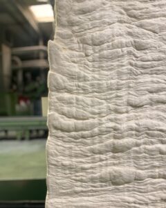Trabajamos según el concepto de economía circular. Fabricamos telas y entretelas recicladas con los residuos de algodón que generamos durante nuestro proceso de producción.